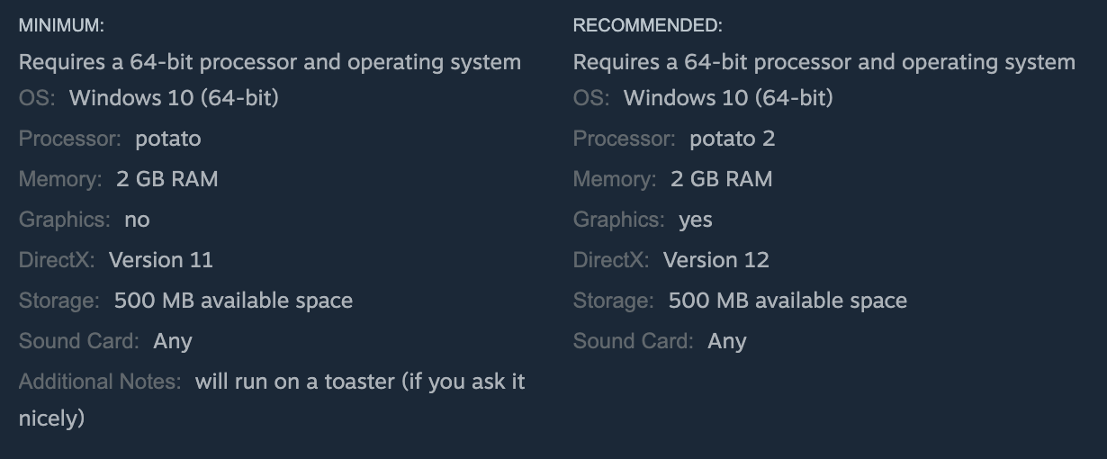 - Minimal Specs: The requirement of a "potato" for a processor speaks volumes. The game prioritizes the integrity of the gameplay loop over graphical fidelity, ensuring it is accessible to gamers globally, regardless of their hardware budget.